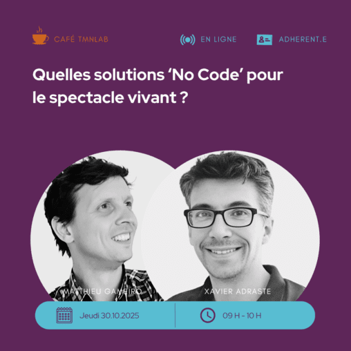 Souvenez-vous, lors du premier café TMNlab en décembre 2024, nous avions exploré les bases du no-code et ses applications dans le spectacle vivant.