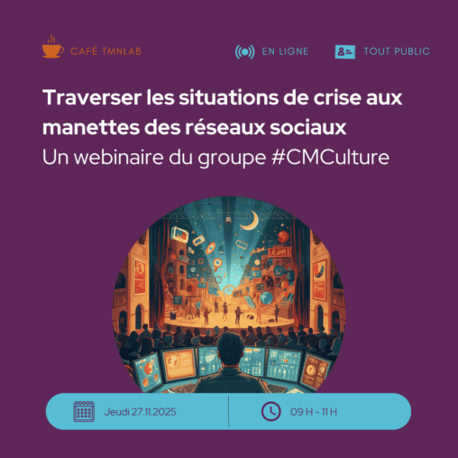 Cette session du TMNlab, organisée par le groupe de travail #CMCulture, a été conçue pour aborder la problématique croissante de la gestion de crise sur les réseaux sociaux dans le secteur culturel. L’objectif principal est de rompre l’isolement des professionnels souvent seuls face à ces enjeux et de partager des expériences et des stratégies concrètes. La rencontre vise à mutualiser les connaissances pour, à terme, co-construire un guide pratique.
