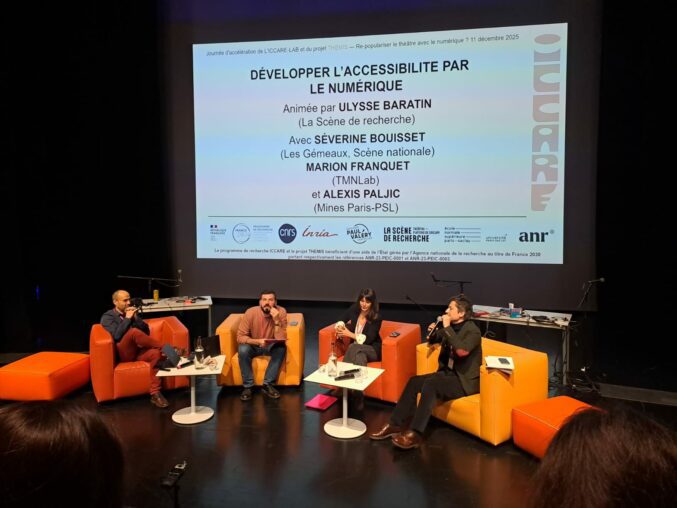 La journée d’accélération consacrée au thème « Re-populariser le théâtre avec le numérique ? » s’inscrivait dans le cadre du PEPR, réunissant l’ICCARE-LAB et le projet THEMIS. À cette occasion, le TMNlab, représenté par Clément Coustenoble et Séverine Bouisset, directrice de la Scène nationale Les Gémeaux et membre du CA, étaient invités à prendre part aux échanges. Artistes, institutions, chercheurs et techniciens ont ainsi partagé une réflexion commune : le numérique apparaît aujourd’hui comme un levier essentiel pour transformer l’accès au théâtre, en renouveler les formes et repenser la relation au public.