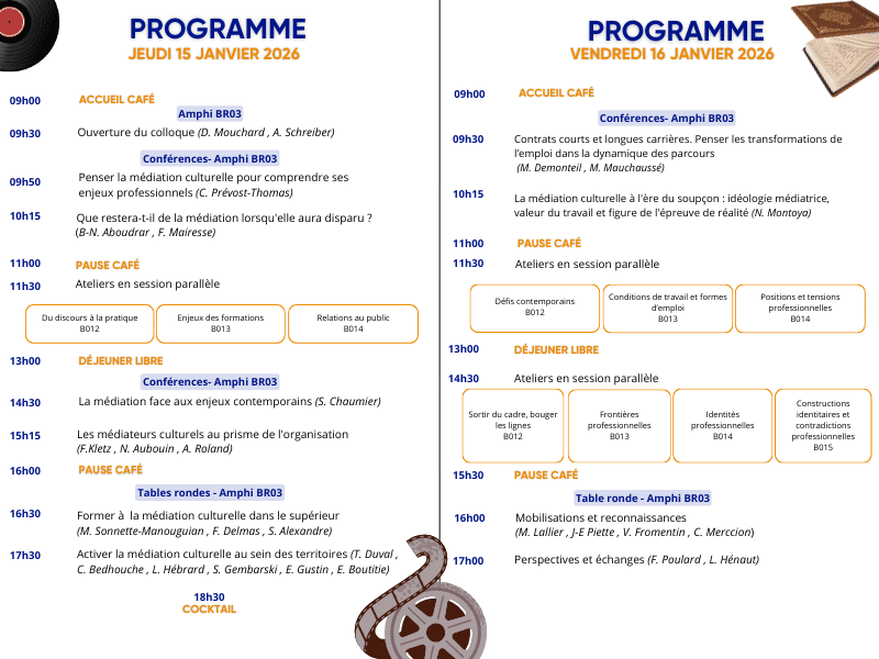 - les activités professionnelles des médiatrices et médiateurs culturel·les.