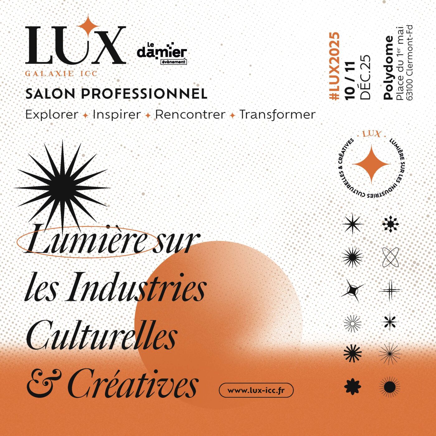 Les 10 et 11 décembre 2025 se tiendra la deuxième édition de LUX , le salon professionnel dédié aux Industries Culturelles et Créatives, à Clermont-Ferrand.
